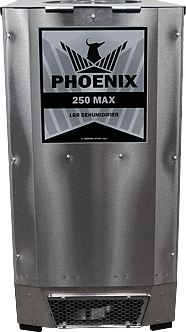 The 250 MAX combines the latest in Phoenix technology with lineage dating back to the original Phoenix 200. The first dehumidifier to be described as an LGR (Low Grain Refrigerant) dehumidifier. Next Phoenix introduced the legendary 200 MAX, which has been a top seller for almost 2 decades, followed by the addition of the Phoenix 200 HT featuring excellent high-temperature performance. With the 250 MAX, Phoenix has now combined the best features of the 200 MAX and the 200 HT into one unit.