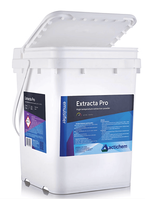 Extracta Pro is a premium quality extraction detergent liquid. This innovative emulsifier formulation has a well buffered pH, with a unique combination of solvents, detergents and water softeners for cutting through the toughest of soils, taking the “sweat” out of carpet cleaning. It is perfect for the hottest of truck mount cleaning systems and holds up to the ultra high heat therefore minimizing residual deposits and clogged spray jets.