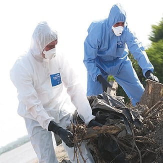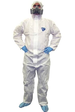 Disposable SMS coveralls offering protection against fine particulates and liquid splashes.